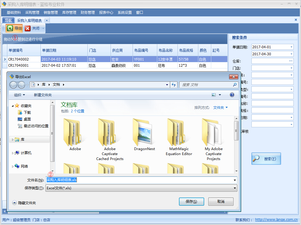 導(dǎo)出“采購入庫明細(xì)表”excel表格數(shù)據(jù)