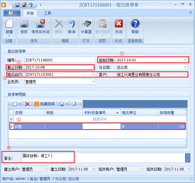 傲藍(lán)建材租賃系統(tǒng)報(bào)停單處理假期停租業(yè)務(wù)