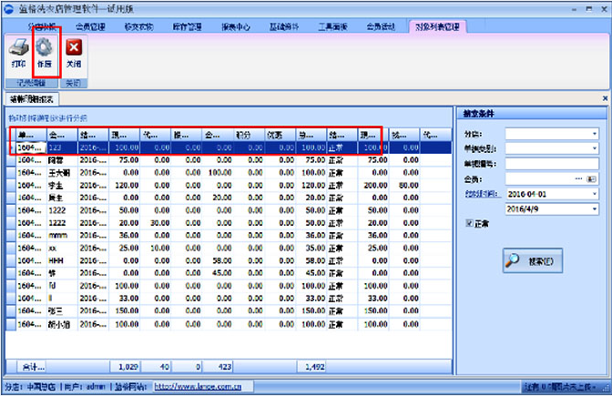 傲藍洗衣管理軟件結(jié)算時選擇錯誤結(jié)算怎么辦